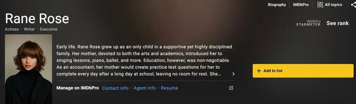 Rane Rose’s passion for storytelling comes to life on screen. One of her short films was presented via the International Film Festival of Manhattan USA at the Marché du Film Short Film Corner Industry Screening in Cannes, France, a milestone that reflects her dedication to creative expression. She has appeared in the television series Dark Ops, taken on the lead role in the upcoming short film UnfAIthful—now entering film festivals—and serves as co-executive producer of Desert Fiends 2.
